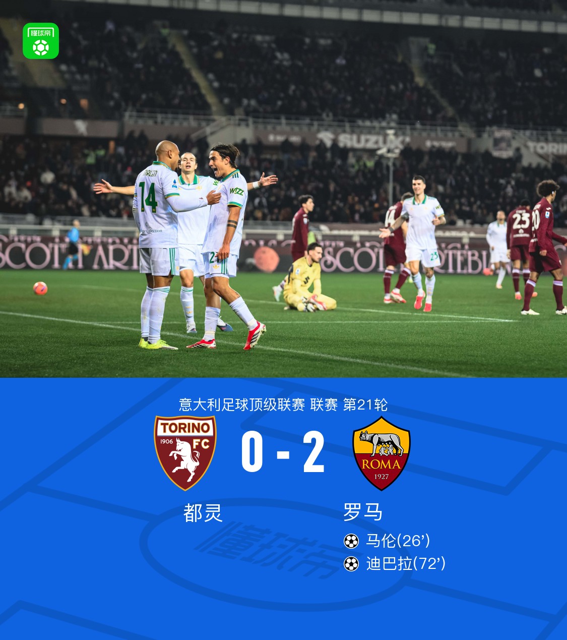 北京时间1月19日,意大利足球顶级联赛第21轮,都灵坐镇主场迎战罗马。上半场马伦破门,但越位进球无效,随后迪巴拉送助攻,马伦首秀破门。下半场迪巴拉射门被扑,随后他接伦施的助攻破门。最终罗马2-0客胜都灵斩获联赛3连胜。点击查看本场比赛详细数据>>点击查看意甲完整积分榜>>关键事件第26分钟,这次没问题,迪巴拉送助攻,马伦首秀破门,罗马1-0都灵第72分钟,迪巴拉射门被扑,随